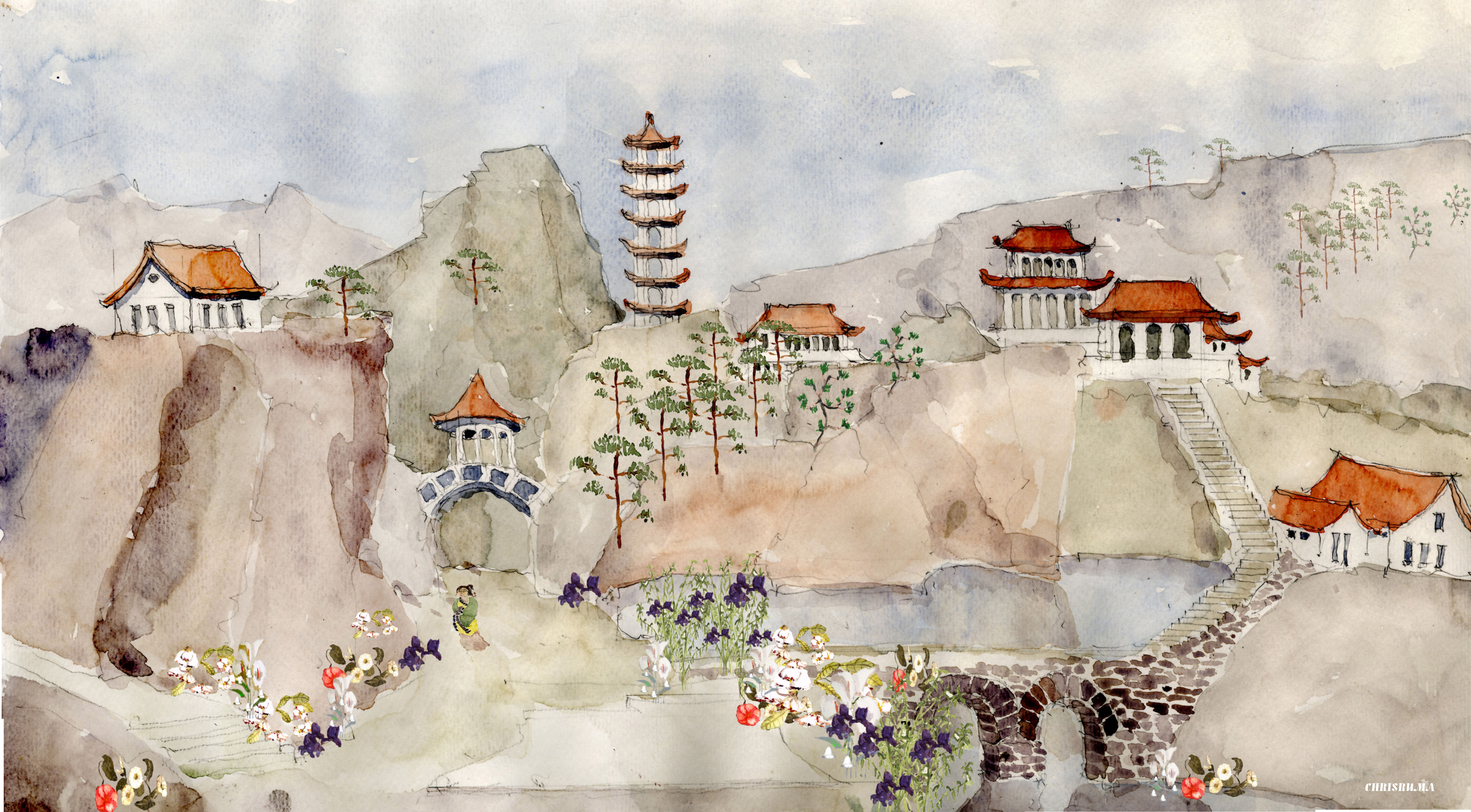 Im Garten sah man die seltsamsten Blimen, und an die allerwichtigsten waren Silberglöckchen gebunden, die erklangen, damit man nicht an ihnen vorbeigehen sollte, ohne sie zu beachten.